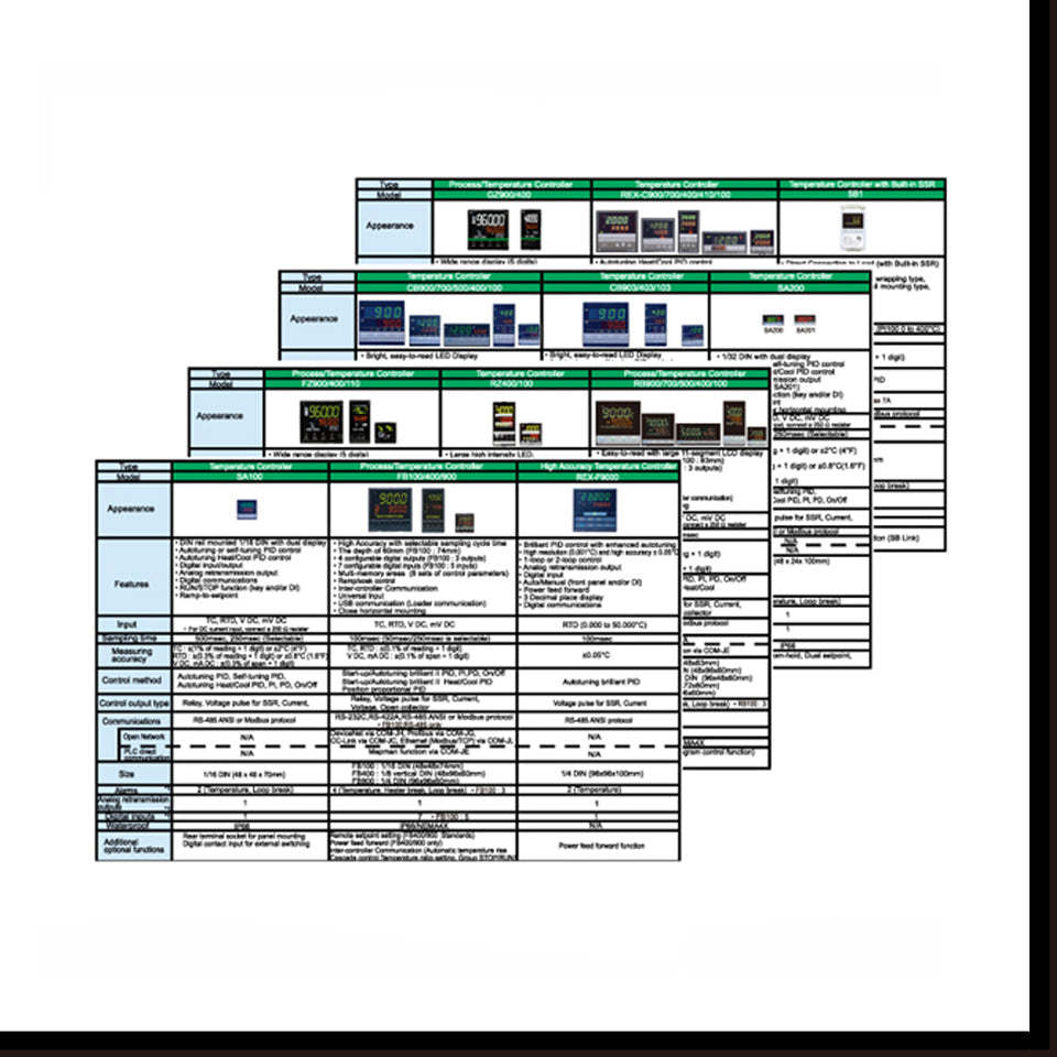 Temperature Controllers Measurement accuracy: ±0.3% of displayed value Sampling time: 0.5 sec....
